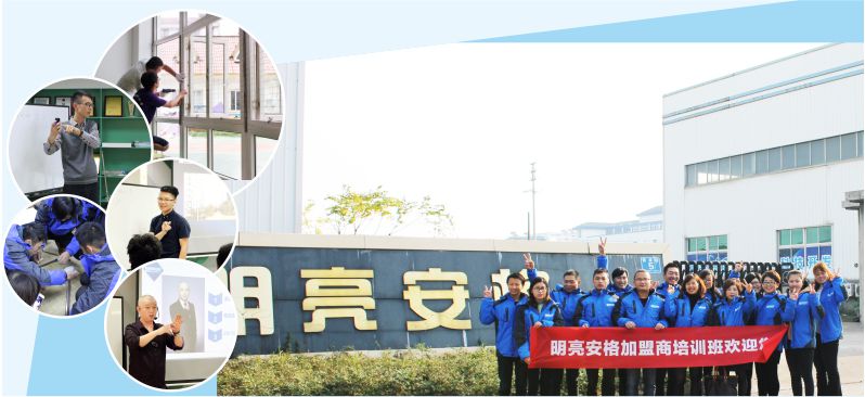 明亮安格開(kāi)設(shè)培訓(xùn)班,以成熟的培訓(xùn)機(jī)制,特聘專(zhuān)業(yè)講師和優(yōu)秀加盟商為加盟商開(kāi)展企業(yè)文化、產(chǎn)品知識(shí)、測(cè)量安裝、銷(xiāo)售技巧、活動(dòng)策劃、市場(chǎng)推廣、渠道拓展、公關(guān)禮儀等專(zhuān)題培訓(xùn)。